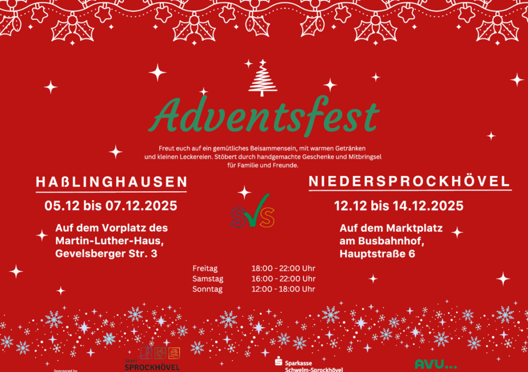 Und auch in diesen Jahr beenden wir wieder mit unseren Adventsfesten in Haßlinghausen und Niedersprockhövel sein.
